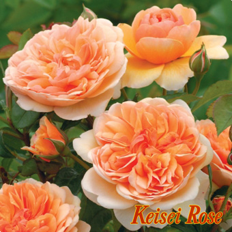 花びらがクウォーター状に並んだロゼット咲きで、素晴らしく豊かなアプリコットの色あいを奏でます。花が開くにつれて、外側の花びらは反り返りながら、色がだんだんと薄くなってきます。葉と茎は、若いうちはブロンズがかった赤で、次第に濃いグリーンへと変化します。濃厚なティー系の香りがあります。勢い旺盛で、まっすぐ伸びるので、ボーダーの後方に植えるのに理想的です。とても病気に強く、極めて信頼のおける品種です。花名はイギリス・ウィラル半島にある19世紀~20世紀初期にかけて造られた美しい家並みの村に由来します。