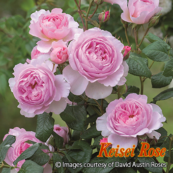 晩春からほとんど絶え間なく大輪花を数多く咲かせる優れた品種です。ピンクのつぼみが徐々に開き、内側にカーブした数え切れないほどの花びらを持つカップ咲きになります。咲き初めからどの段階でも美しく、温かみのあるミルラの強香です。開花した状態では、中央が赤々とした深みのあるピンクで、外側になるに従って淡くなります。咲き進むにつれ、花の中心に金色の雄しべが現れます。病気になりにくい丈夫なバラで、通常のシュラブローズよりも生長が早く、大きく育ちます。ボーダーの中央から後方にかけて植えるのもよし、また、このバラだけを植えても印象的な姿になります。(バラ画像提供:(c) David Austin Roses)