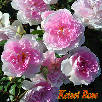 細美しいバラの系譜と、屈強なバラの系譜が完璧に融合した品種です。房咲きで咲く中大輪の花は個性的なロゼット咲きで、淡いピンクのグラデーションが艶やかで華やかです。ダマスクにティとハーブの中香。樹勢がとても強いシュラブの四季咲きで、耐病性が驚くほど強いです。秋の花枝だけほんの少し伸びるので、その枝を利用してコンパクトなつるバラにもできます。初心者向きで、うどんこ病にとても強く、黒星病には驚くほどの耐病性を持ちます。名前は「愛のすみか」を意味するサンスクリット語から。