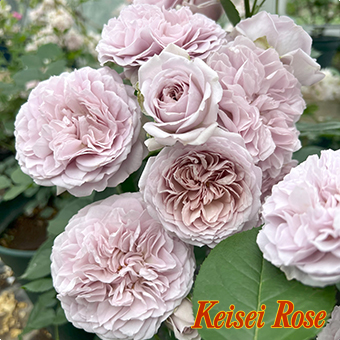 整ったロゼットの花が房で良く咲き、耐病性も強く育てやすいバラです。グレイッシュなくすみピンクが美しい夕暮れの空を感じさせ、「夕暮れ」などの意味のフランス語で命名されました。