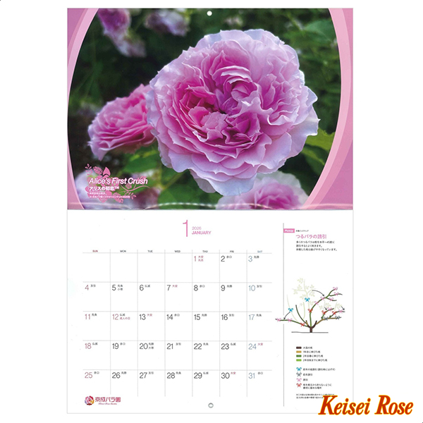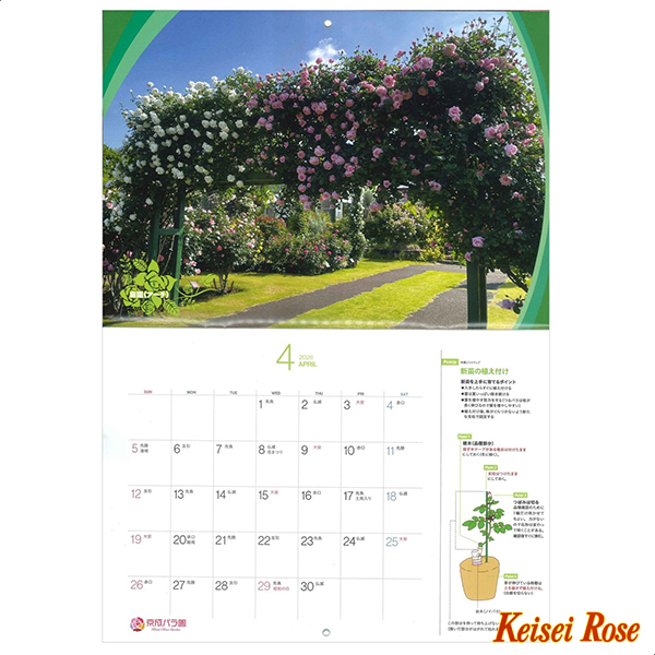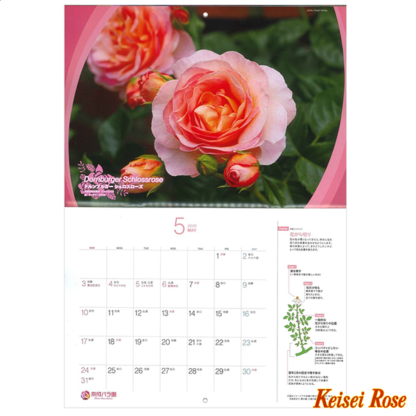 人気のガーデンバラや京成バラ園ローズガーデンの風景など、美しい写真が毎月お部屋を彩ります。イラストで詳しくご案内するバラ栽培の”作業ピックアップ”も月ごとに掲載。バラ愛好家の皆様に喜んでいただけるよう、バラ園ならではのカレンダーを作りました。